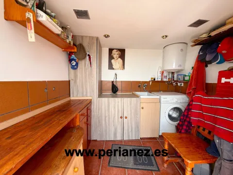 El garaje tiene capacidad para un coche de gran tamaño y una moto, y además dispone de espacio de almacenaje y un pozo propio, un recurso muy útil para el mantenimiento del jardín o la piscina.