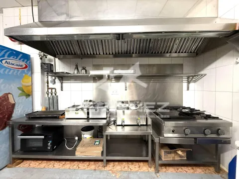 La cuina està completament equipada, incloent-hi neveres i congeladors industrials en acer inoxidable, així com campana extractora amb extracció automàtica i sortida de fums.